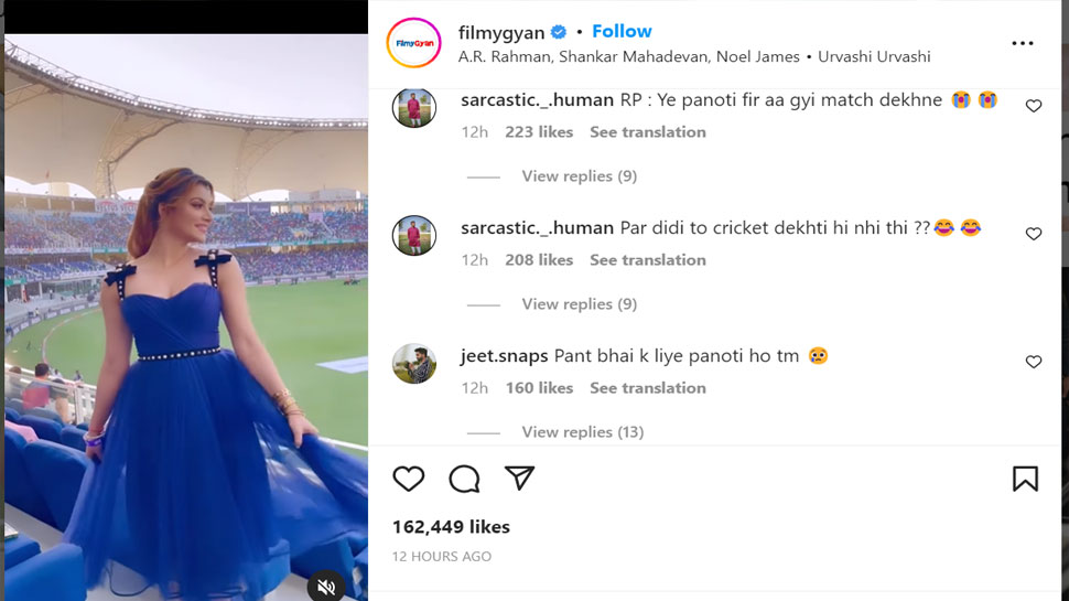 भारत के मैच हारने के बाद फैंस उर्वशी रौतेला (Urvashi Rautela) को ट्रोल करने लगे हैं. एक यूजर ने लिखा है कि दीदी तो क्रिकेट देखती नहीं हैं. एक शख्स ने पूछा- इंडिया को चीयर करने गई थीं या फिर ऋषभ को? एक ने गुस्से में लिखा- बस इसी की वजह से हम मैच हार गए. एक फैंस ने लिखा कि ये पंत के लिए पनौती है.
