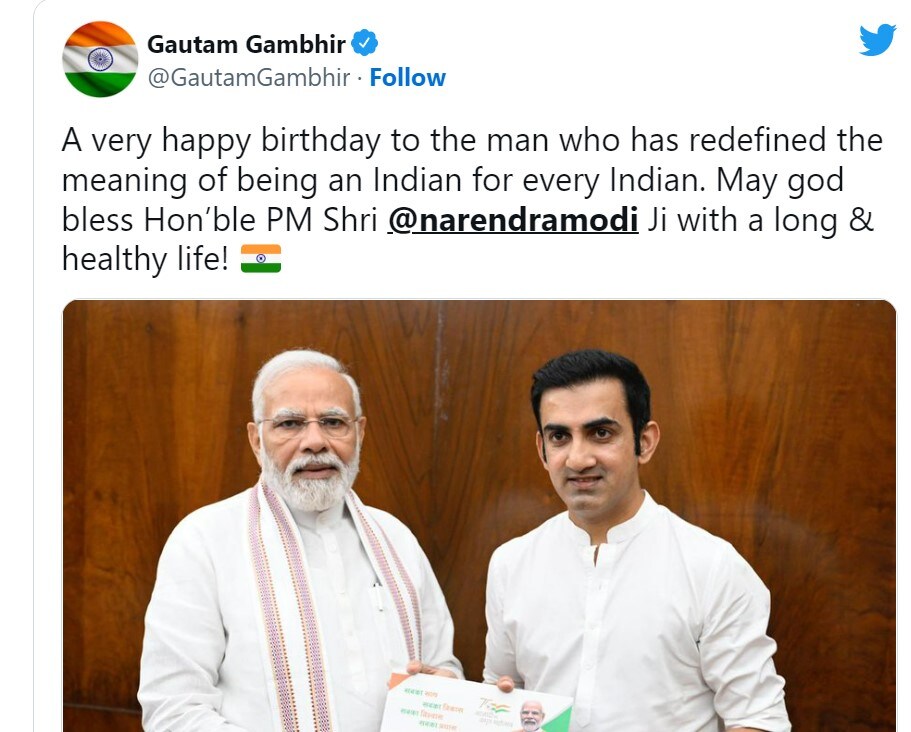 भारत के पूर्व ओपनर और बीजेपी से ईस्ट दिल्ली के सांसद गौतम गंभीर ने ट्वीट किया, ‘उस व्यक्ति को जन्मदिन की बहुत बहुत शुभकामनाएं, जिसने हर भारतीय के लिए भारतीय होने के अर्थ को परिभाषित किया है. भगवान पीएम मोदी को लंबे समय तक आशीर्वाद और स्वस्थ जीवन दें.’