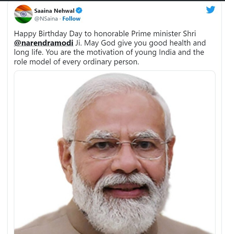 इसके अलावा बैडमिंटन खिलाड़ी साइना नेहवाल और लक्ष्य सेन ने भी पीएम मोदी को बधाई दी.