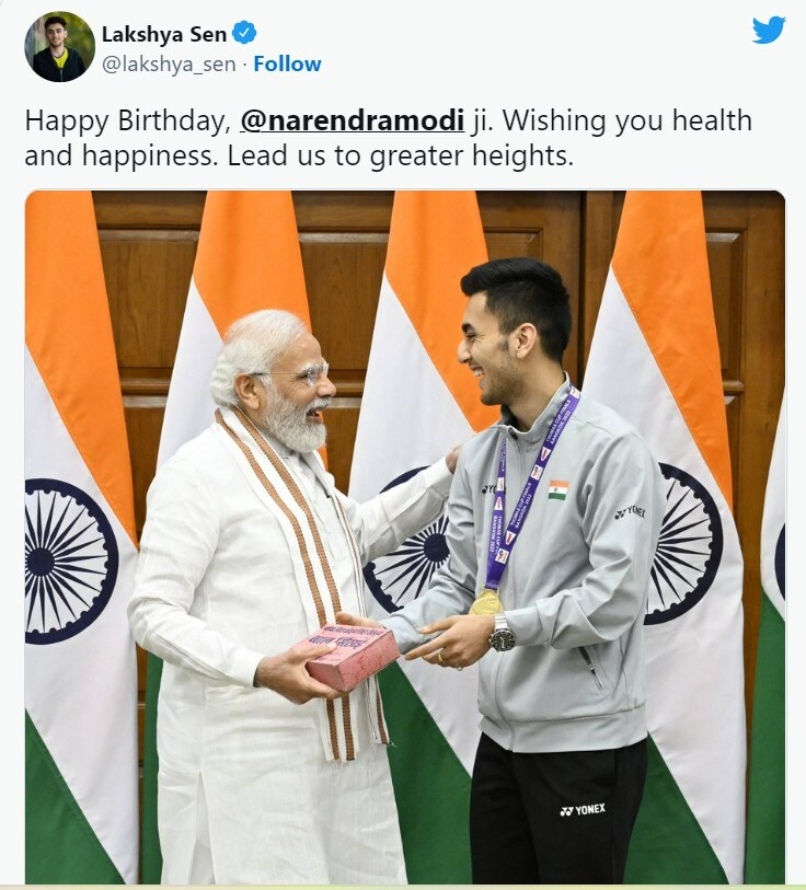 युवा शटलर लक्ष्य सेन ने खुद की पीएम मोदी की साथ वाली फोटो को ट्वीट कर उन्हें जन्मदिन की बधाई दी.