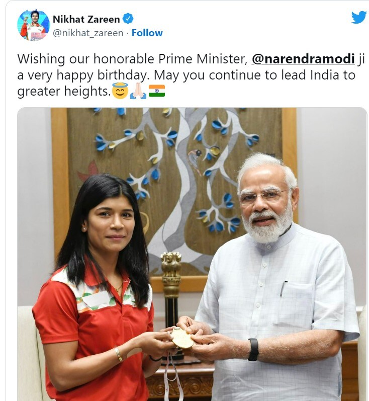 कॉमनवेल्थ 2022 में गोल्ड मेडल विजेता बॉक्सर निकहत जरीन ने भी पीएम मोदी को जन्मदिन पर बधाई दी.