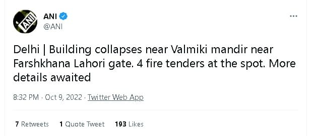 दिल्ली के लाहौरी गेट के फरशखाना इलाके में वाल्मीकि मंदिर के पास रविवार की देर शाम एक घर ढह गया। दमकल की पांच गाड़ियां मौके पर हैं। अब तक पांच लोगों को बचाकर उन्हें अस्पताल में भर्ती कराया गया है। मलबे में अभी तीन से चार लोगों के और फंसे होने की आशंका है।