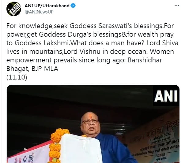 हल्द्वानी में आयोजित कार्यक्रम में विधायक बंशीधर भगत कुछ ऐसा बोल गए जो कि सोशल मीडिया पर वायरल हो गया। भगत का कहना था कि उन्होंने नारी शक्ति की बात को समझाते हुए बात रखी थी।  उन्होंने कहा कि बेटियां देवी का रूप होती है। देवी के सभी स्वरूपों में जीवन का आधार छिपा है।