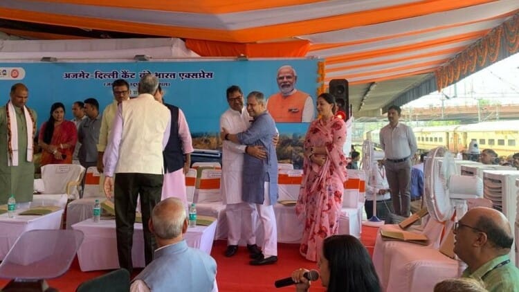 बीजेपी के राज्यसभा सांसद घनश्याम तिवाड़ी, दौसा से लोकसभा सांसद जसकौर मीणा, जयपुर के मालवीय नगर से बीजेपी विधायक कालीचरण सराफ, किशनपोल से पूर्व विधायक मोहनलाल गुप्ता, हवामहल से पूर्व विधायक सुरेंद्र पारीक, अजमेर दक्षिण से बीजेपी की विधायक अनीता बधेल सहित कई बीजेपी के वरिष्ठ नेता वंदे भारत एक्सप्रेस ट्रेन के उद्घाटन समारोह में जयपुर जंक्शन रेलवे स्टेशन पर पहुंचे। इस दौरान मंच से बीजेपी मालवीय नगर विधायक कालीचरण सराफ ने इस ट्रेन के गांधीनगर रेलवे स्टेशन पर ठहराव की मांग उठाई है।
