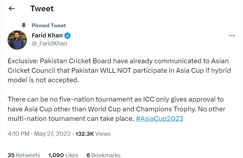 पीसीबी ने पहले भी एशिया कप और वर्ल्ड कप 2023 के बहिष्कार की धमकी दी थी, वह अब भी कायम है. रुख अब और स्पष्ट है क्योंकि पीसीबी ने स्पष्ट संदेश भेजा है कि अगर एशिया कप पाकिस्तान में नहीं होता है, तो बाबर आज़म एंड कंपनी टूर्नामेंट में भाग नहीं लेगी.