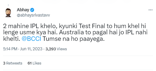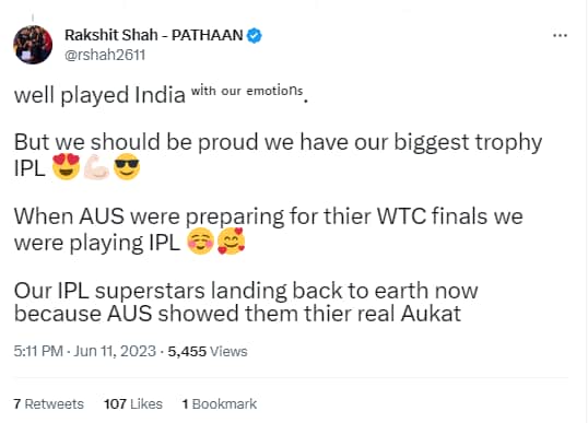 नई दिल्ली. भारत टीम को एक बार फिर से निराशा हाथ लगी है. ब्लू टीम के आईसीसी वर्ल्ड टेस्ट चैंपियनशिप के खिताब को जीतने का सपना चकनाचूर हो गया है. रोहित एंड कंपनी को आखिरी दिन जीत के लिए 280 रन की जरूरत थी, लेकिन ब्लू टीम दूसरी पारी में 234 रन पर ही ढेर हो गई. इस प्रकार इस रोमांचक मुकाबले में भारतीय टीम को 209 रन से शिकस्त का सामना करना पड़ा. भारतीय टीम के लगातार बड़े टूर्नामेंट में फ्लॉप प्रदर्शन से फैंस काफी नाराज हैं और सोशल मीडिया के माध्यम से अपनी नाराजगी जाहिर कर रहे हैं, जो इस प्रकार है-