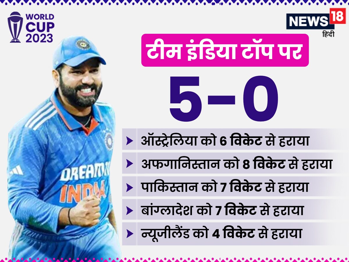 नई दिल्ली. रोहित शर्मा पहली बार वनडे वर्ल्ड कप में कप्तानी कर रहे हैं. वर्ल्ड कप 2023 में टीम इंडिया ने रोहित की अगुआई में अब तक कमाल का प्रदर्शन किया है. टीम ने अब तक खेले अपने पांचों मैच जीते हैं और टीम 10 अंक के साथ पॉइंट टेबल में टॉप पर है. भारत ने अब तक ऑस्ट्रेलिया, अफगानिस्तान, पाकिस्तान, बांग्लादेश और न्यूजीलैंड को हराया है. टीम अगले मुकाबले में 29 अक्टूबर को लखनऊ में इंग्लैंड से भिड़ेगी. टूर्नामेंट की बात करें, तो रोहित ने पहले मैच को छोड़कर हर मैच में भारतीय टीम को तेज शुरुआत दिलाई है. रोहित का खेल 2011 वर्ल्ड कप में वीरेंद्र सहवाग जैसा दिख रहा है. तब सहवाग टीम इंडिया को तेज शुरुआत दिला रहे थे. टीम ने अंतिम बार 2011 में ही वर्ल्ड कप जीता था. ऐसे में क्या 2023 में भी वर्ल्ड कप जीतने का संयोग बन रहा है.